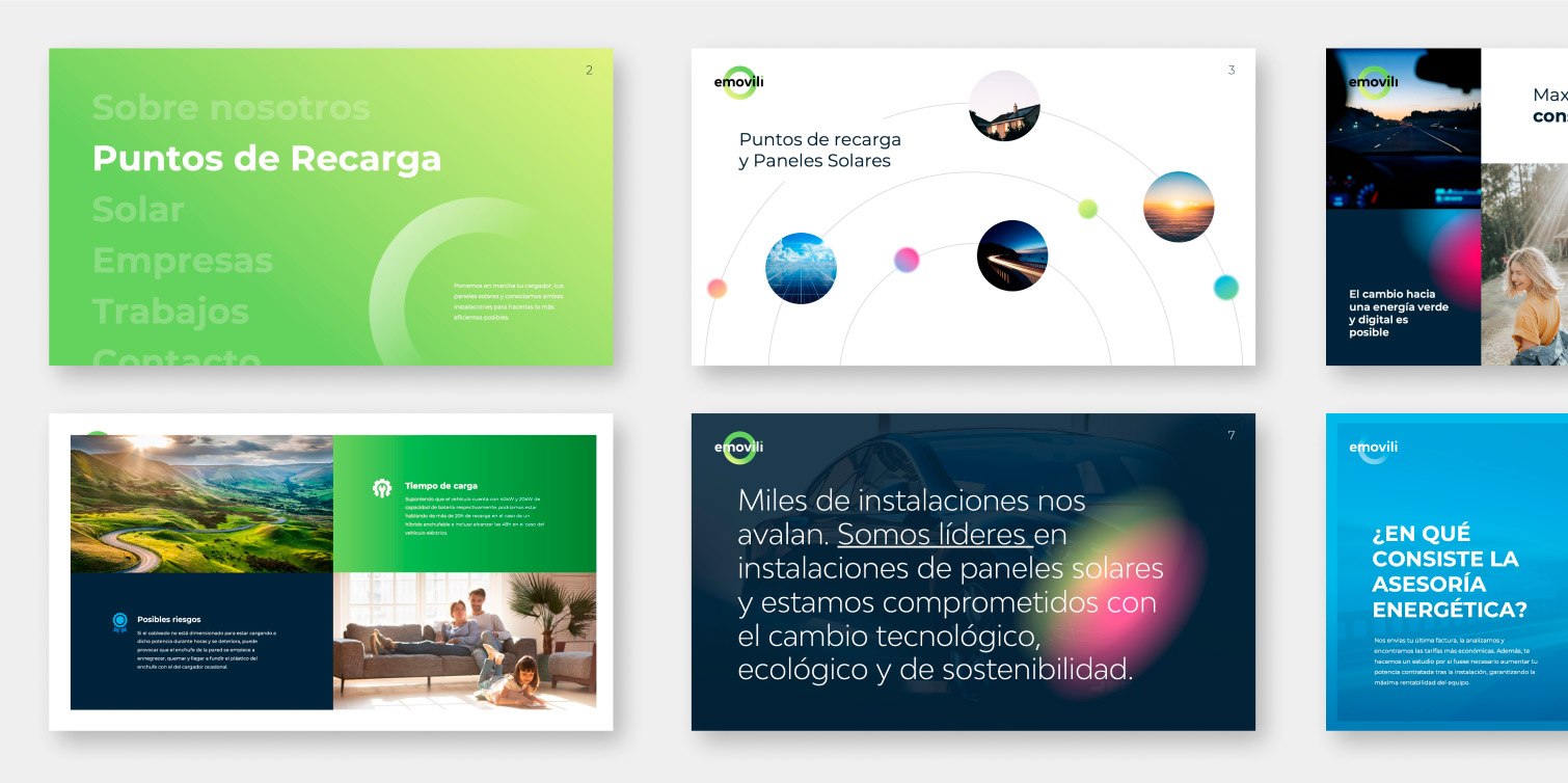 Emovili es una empresa de instalación de puntos de recarga y paneles solares, cuya imagen de marca había quedado desfasada tras el proyecto de abrir una nueva línea de negocio. Por ello, se les justificó la necesidad de desarrollar un rebranding completo para que la marca fuera moderna, versátil y se adaptara fácilmente a las nuevas y futuras necesidades del mercado.